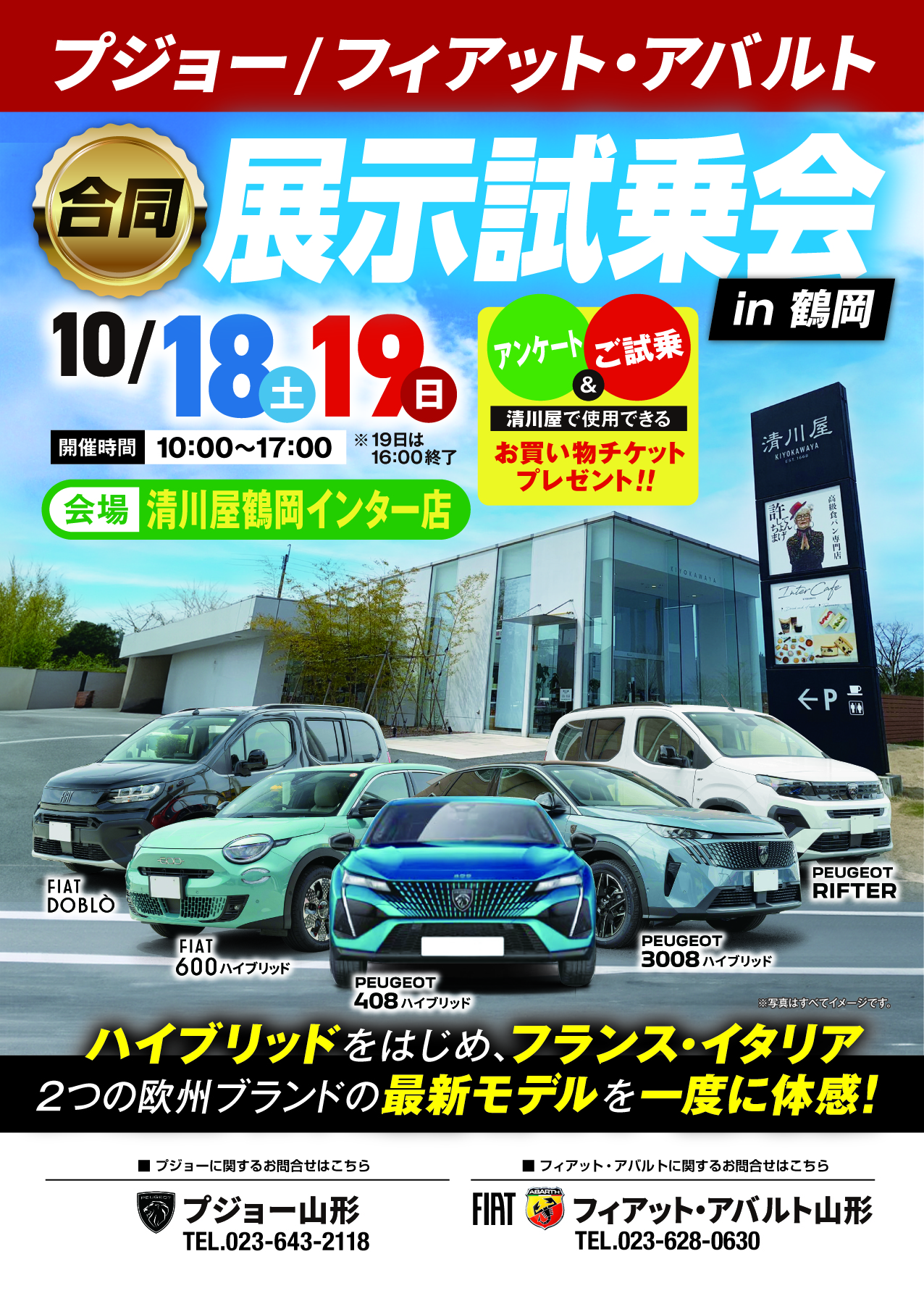 フランス車、プジョーとイタリア車、フィアット・アバルト。